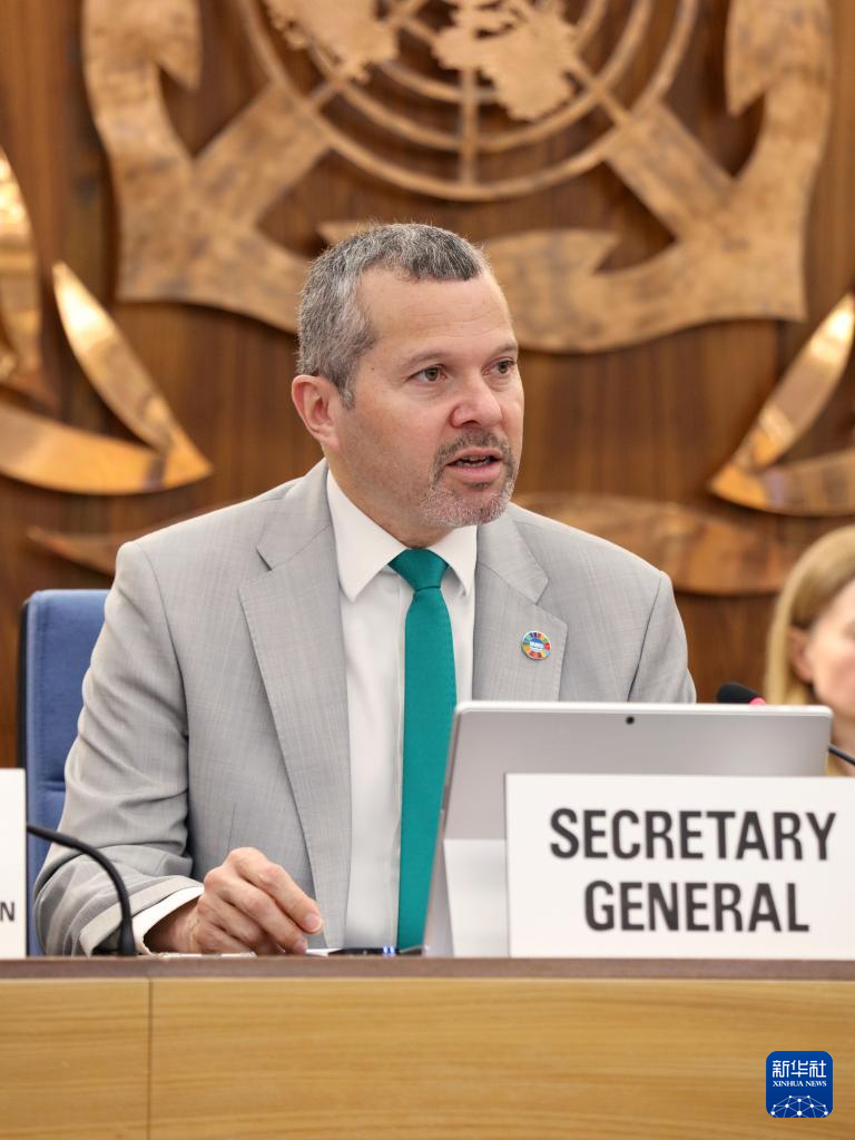 3月18日,國際海事組織秘書長多明格斯在英國倫敦舉行的國際海事組織理事會(huì)第36屆特別會(huì)議上致辭。新華社發(fā)(國際海事組織供圖)