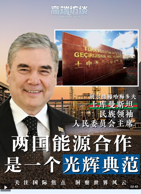 近日,土庫曼斯坦民族領袖、人民委員會主席別爾德穆哈梅多夫在接受總臺《高端訪談》專訪時表示,能源領域是土庫曼斯坦—中國戰(zhàn)略合作的核心方向。