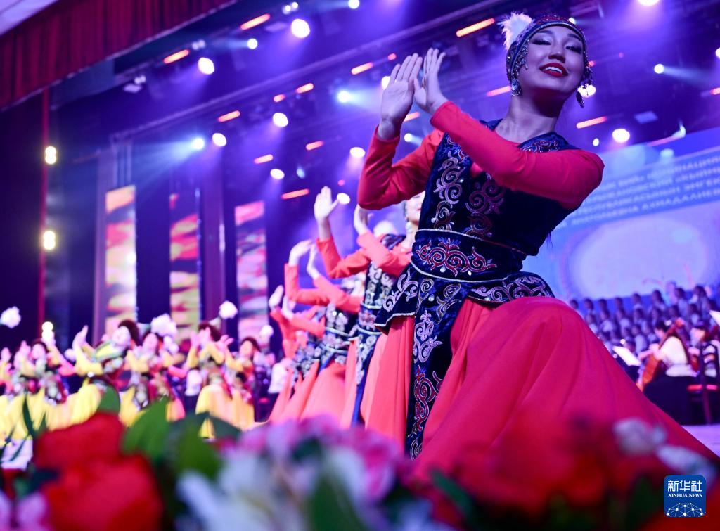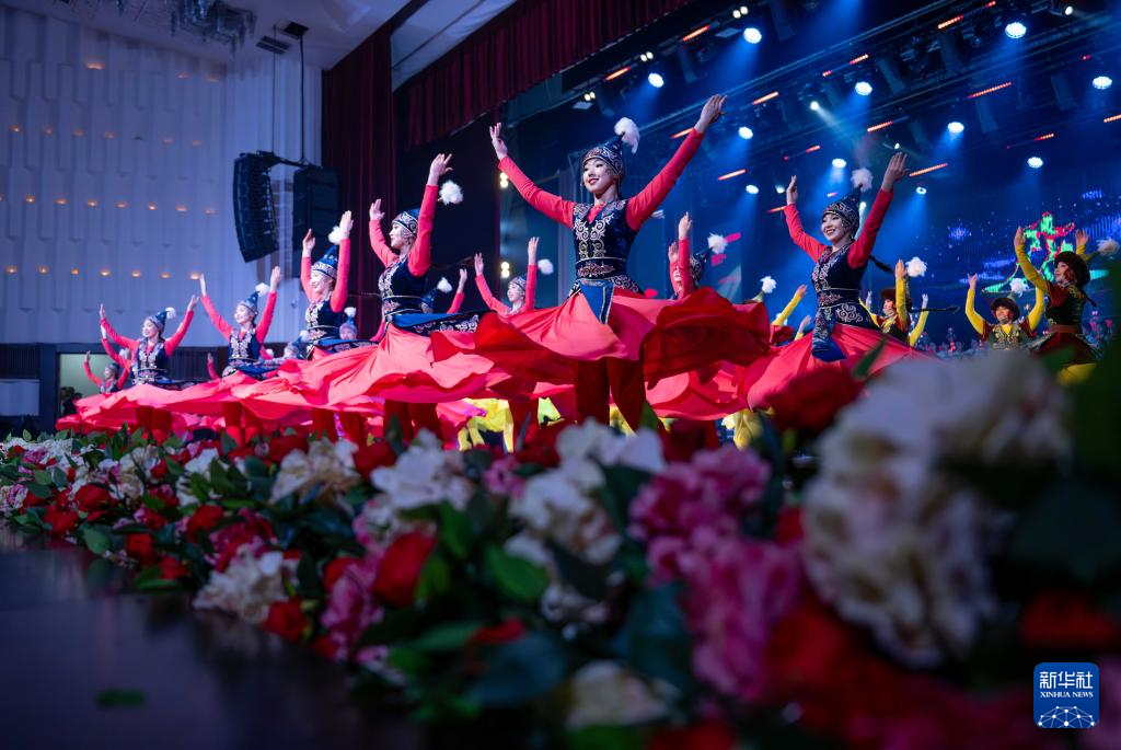3月24日,在吉爾吉斯斯坦首都比什凱克,演員在開(kāi)幕式上表演舞蹈。新華社記者 李任滋 攝