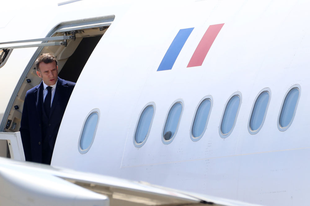 3月9日,法國總統(tǒng)馬克龍抵達塞浦路斯西南部的帕潘德里歐空軍基地。新華社發(fā)(喬治·克里斯托弗魯攝)