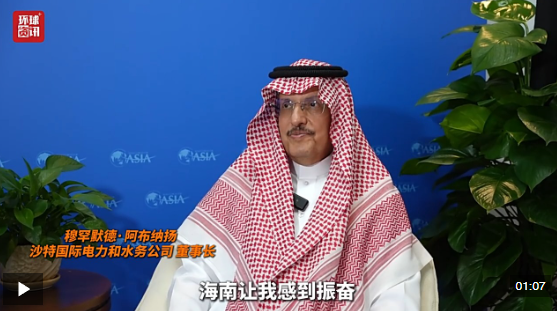 博鰲亞洲論壇2026年年會(huì)3月24日至27日在海南博鰲舉行。論壇期間,來(lái)華參會(huì)的沙特國(guó)際電力和水務(wù)公司創(chuàng)始人兼董事長(zhǎng)穆罕默德·阿布納揚(yáng)接受總臺(tái)環(huán)球資訊記者專(zhuān)訪。