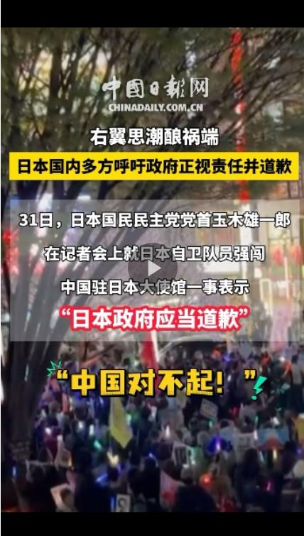 事件在日本國內(nèi)引發(fā)批評。25日,數(shù)千名日本民眾在國會(huì)前舉行抗議集會(huì),指責(zé)這是日本右翼排外主義造成的惡果,有人直指“這就是恐怖襲擊”,要求防衛(wèi)大臣辭職。28日,部分日本民眾在東京新宿舉行抗議集會(huì),高呼“高市道歉”“小泉道歉”“中國對不起”等口號,要求日本政府就此事件向中國道歉。