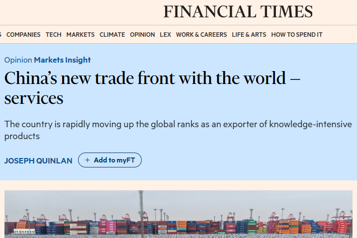 《金融時(shí)報(bào)》認(rèn)為,中國(guó)外貿(mào)結(jié)構(gòu)正在出現(xiàn)新的變化。與過(guò)去更多依靠商品出口相比,技術(shù)、數(shù)字系統(tǒng)和配套服務(wù)在對(duì)外貿(mào)易中的比重正逐步上升。文章認(rèn)為,隨著中國(guó)科技龍頭企業(yè)持續(xù)被看好,更多中國(guó)企業(yè)加快融入全球知識(shí)密集型貿(mào)易,有望進(jìn)一步拓展增長(zhǎng)空間。