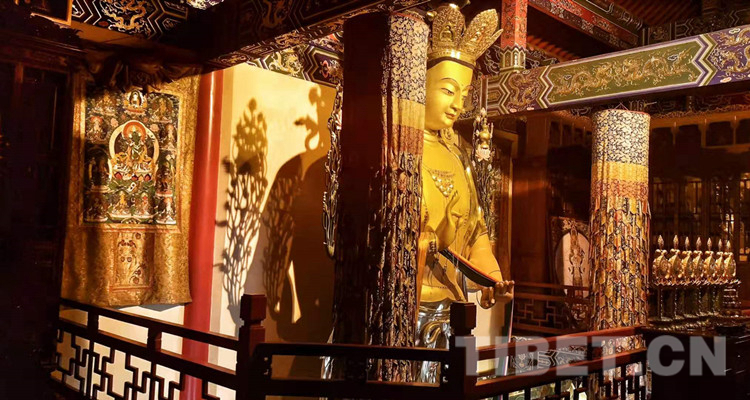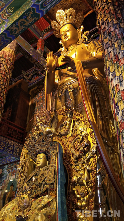 圖為藏經(jīng)閣內(nèi)供奉的釋迦牟尼佛十二歲等身像和彌勒佛立像 攝影:鄭朔