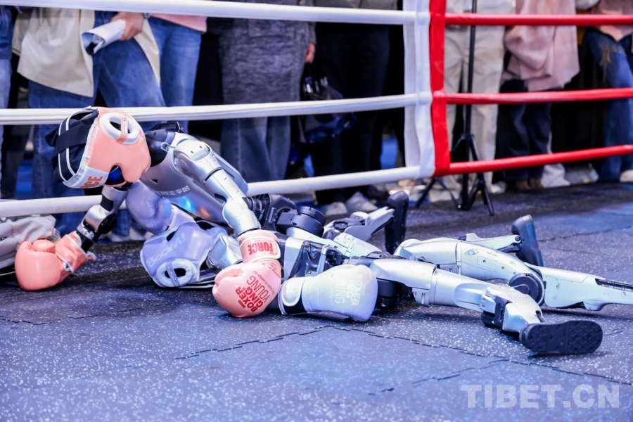 圖為兩位機(jī)器人拳手交替進(jìn)攻,在靈活的站立攻防轉(zhuǎn)換中彰顯了最新的人工智能成果。