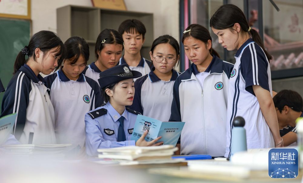 9月15日,民警在貴州省黔西第一中學給學生普及網(wǎng)絡安全知識。新華社發(fā)(范暉攝)