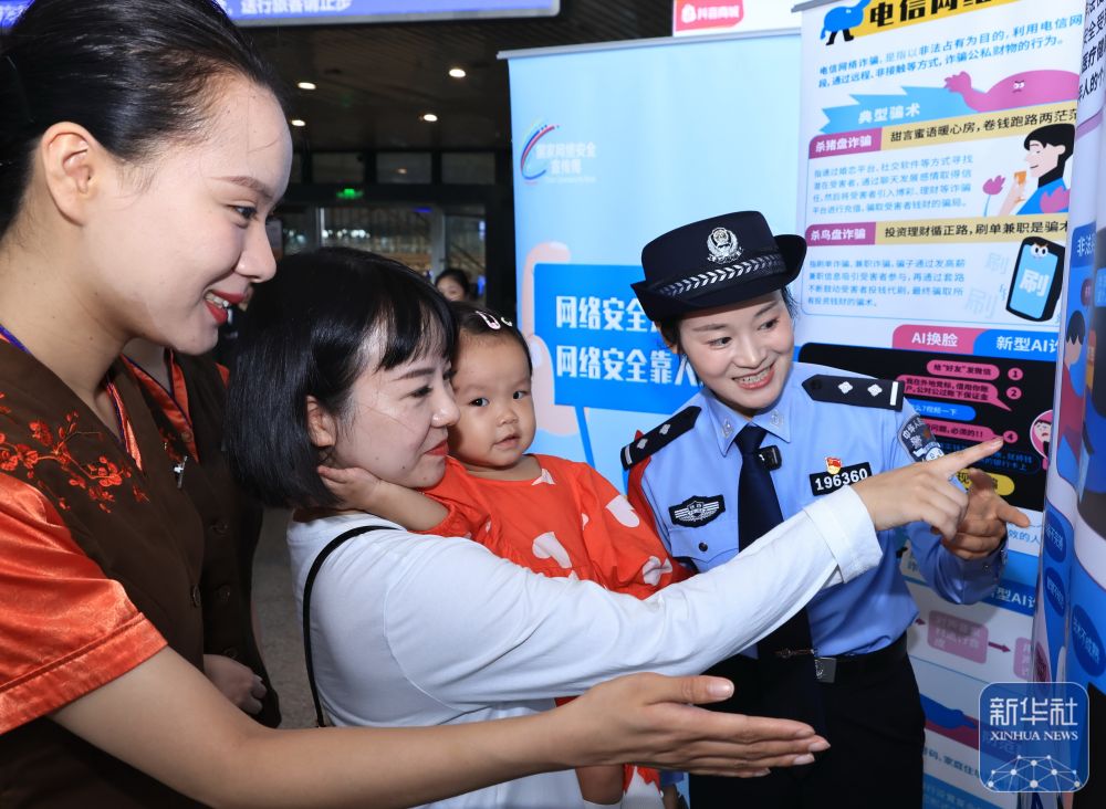 9月15日,湖北武漢鐵路公安處武漢站派出所民警在武漢站為旅客講解網(wǎng)絡安全知識。新華社發(fā)(趙軍攝)