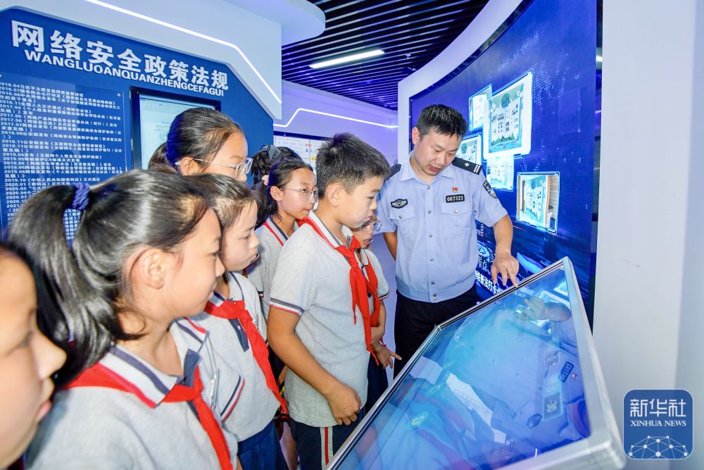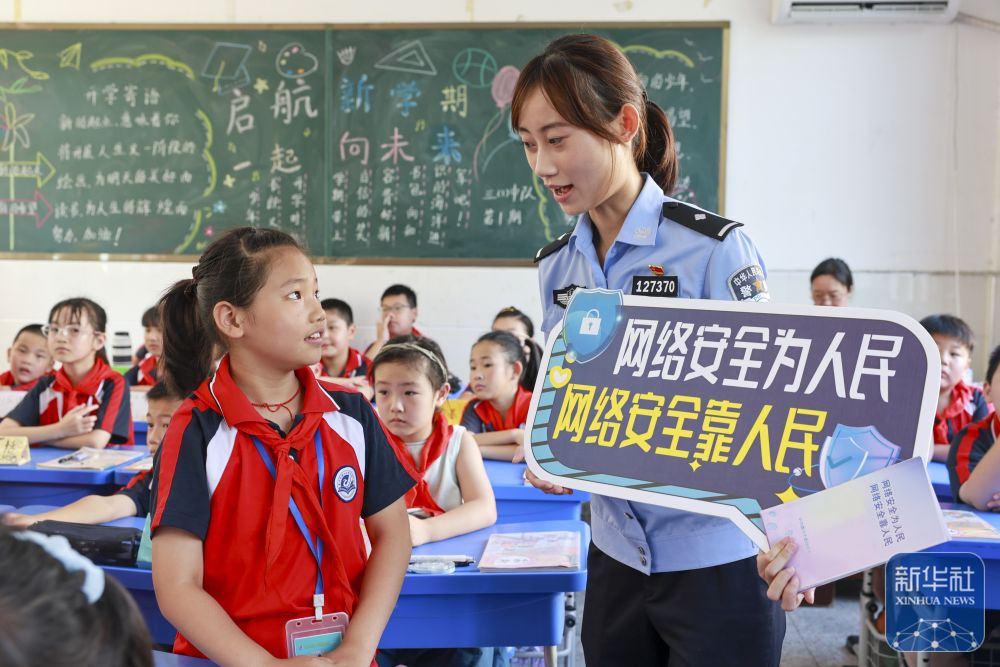 9月15日,民警在天津市濱海新區(qū)塘沽實驗小學為學生講解網(wǎng)絡安全知識。新華社發(fā)(杜鵬輝攝)