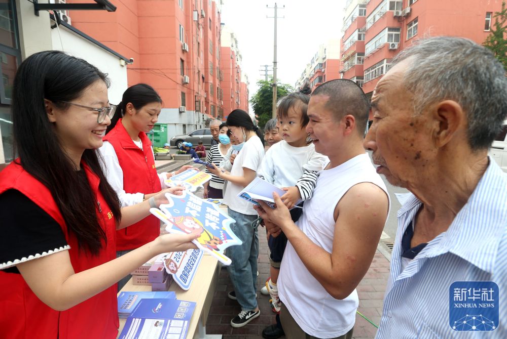 9月15日,河南省洛陽市汝陽縣工業(yè)信息化和商務局工作人員在文化廣場為居民講解網(wǎng)絡安全知識。新華社發(fā)(康紅軍攝)