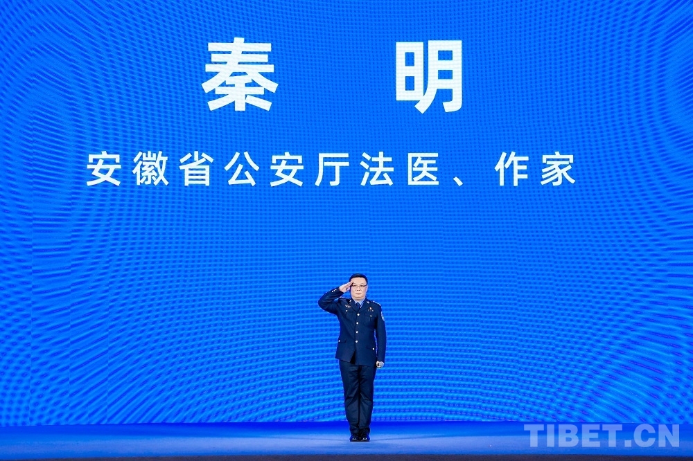 圖為安徽省公安廳法醫(yī)、作家秦明出席活動并發(fā)言