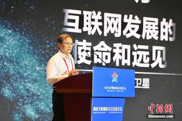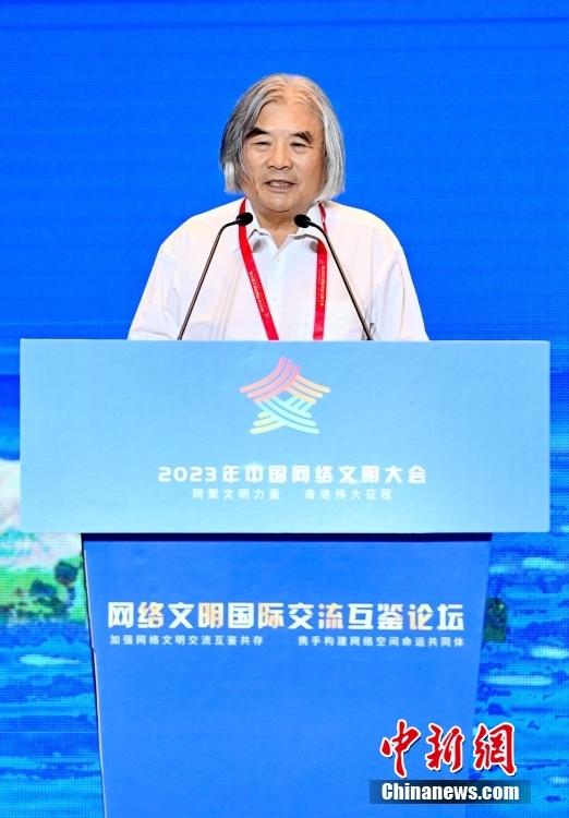7月18日,2023年中國網(wǎng)絡(luò)文明大會(huì)網(wǎng)絡(luò)文明國際交流互鑒論壇在廈門舉辦。中外嘉賓圍繞加強(qiáng)網(wǎng)絡(luò)文明交流、互鑒、共存等話題展開探討。圖為光明日報(bào)社原副總編輯、浙大城市學(xué)院文明與傳播研究院研究員沈衛(wèi)星作主題演講。中新社記者 王東明 攝