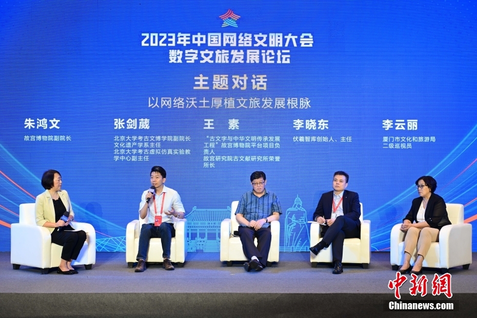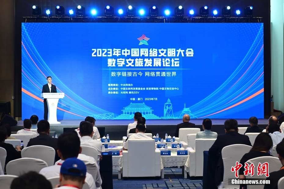 7月19日,2023年中國網絡文明大會數(shù)字文旅發(fā)展論壇在福建省廈門市舉辦。論壇以“數(shù)字鏈接古今 網絡貫通世界”為主題,邀請國內外數(shù)字化、文博考古、旅游等領域專家和代表共同探索古籍文物在數(shù)字時代的創(chuàng)造性轉化和創(chuàng)新性發(fā)展,以及在數(shù)字技術賦能下,文旅產業(yè)如何實現(xiàn)高質量發(fā)展。圖為論壇現(xiàn)場。中新社記者 田雨昊 攝