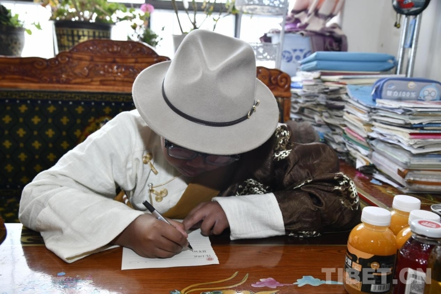 圖為噶嗎多吉為王成誠同學(xué)寫信 攝影:趙振宇