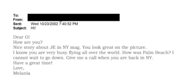 然而,梅拉尼婭所提及的那封電子郵件,開篇便以“親愛的G!”相稱,內(nèi)容涉及對紐約某雜志一篇報道“JE”文章的稱贊,并提及一張麥克斯韋現(xiàn)身其中的照片。郵件中,梅拉尼婭還詢問了麥克斯韋近期棕櫚灘之行的情況,末尾更建議尚未因性販運罪身陷囹圄的麥克斯韋,下次來紐約時務(wù)必聯(lián)系她。落款赫然寫道:“愛你的,梅拉尼婭?!?nbsp;