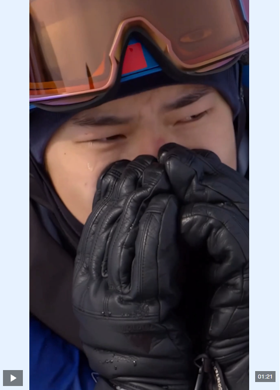 完賽后,蘇翊鳴難掩熱淚。“從北京冬奧會后的休息,再回到世界最高水平,對我來說是一個艱難的過程?!彼哪觊g,蘇翊鳴經(jīng)歷了傷病、挫折、低谷,他的腳踝曾一度腫脹到穿不上雪鞋,甚至不能行走,繼續(xù)訓(xùn)練和比賽全靠止疼藥支撐。但在一度幾乎崩潰,幾乎要放棄的時候,他堅持下來了,就在他22歲生日當(dāng)天,蘇翊鳴再次站上奧林匹克之巔,在國際賽場展現(xiàn)出了中國冰雪人的魅力。