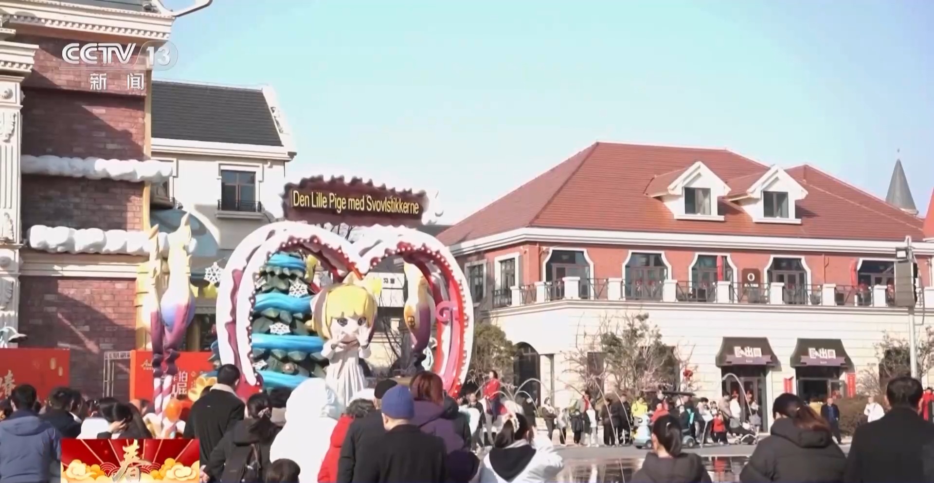 春節(jié)期間,在江蘇射陽安徒生童話樂園,“福馬迎春”主題展與夢幻城堡相映成趣,將傳統(tǒng)年味與童話美學(xué)深度融合。游客輕敲金鑼,祈愿新春順?biāo)?。國風(fēng)巡游隊(duì)伍精彩亮相,鼓樂齊鳴、揚(yáng)福送喜。