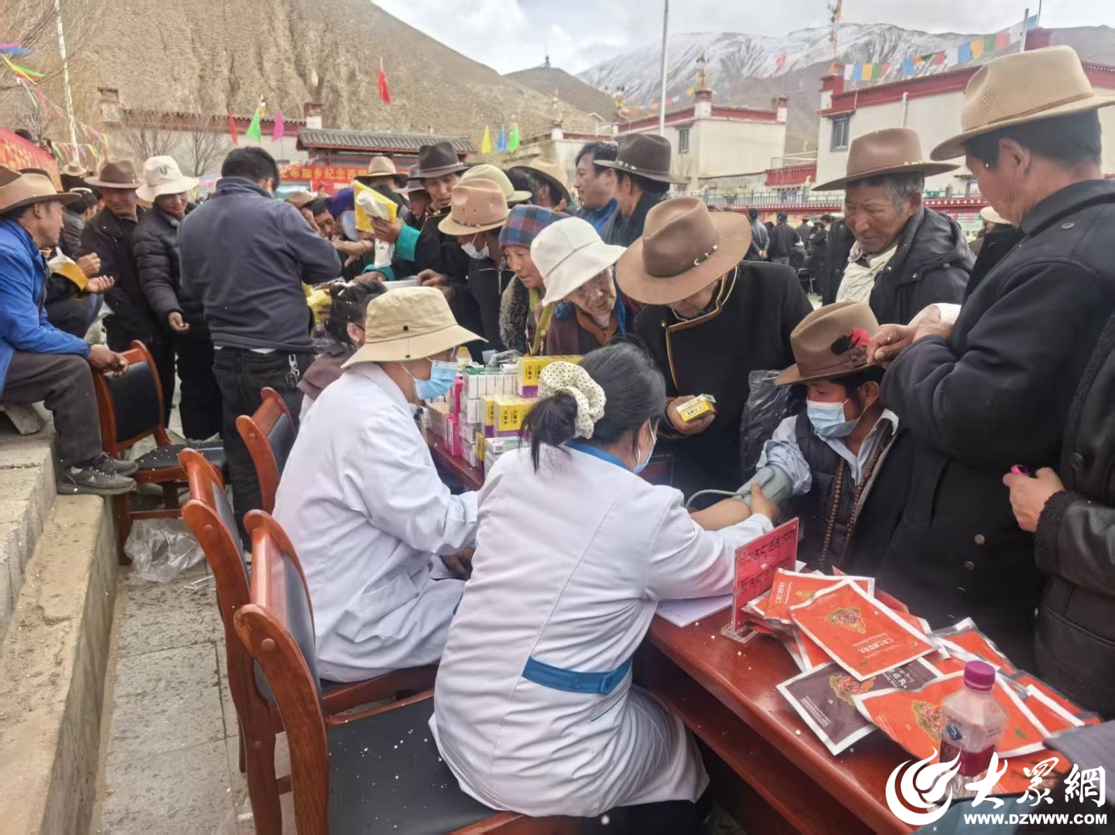 3月27日,義診現(xiàn)場突降冰雹,氣溫驟降,寒風(fēng)刺骨。面對(duì)惡劣天氣,濰坊援藏醫(yī)療隊(duì)沒有一人退縮。大家迅速用身體護(hù)住醫(yī)療設(shè)備和藥品,將行動(dòng)不便的老人護(hù)送至安全區(qū)域,在風(fēng)雪中堅(jiān)持完成全部診療服務(wù)。當(dāng)天累計(jì)服務(wù)群眾百余名,發(fā)放常用藥物200余盒。