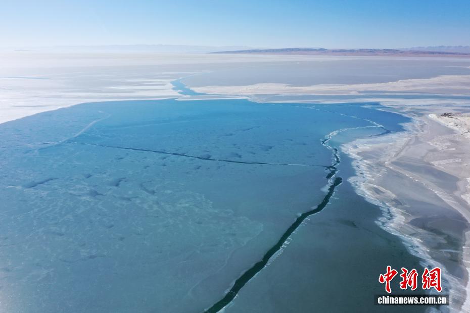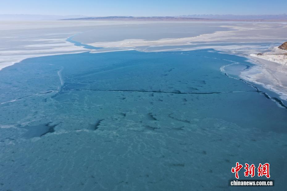 2月13日,青海省海北藏族自治州剛察縣圣泉灣景區(qū),中國最大的內(nèi)陸咸水湖青海湖已進(jìn)入封凍期。昔日碧波蕩漾的湖面被厚冰覆蓋,冰裂紋理如大地墨痕,與遠(yuǎn)處高山相映成畫,盡顯高原冬日的靜謐。(無人機(jī)照片)