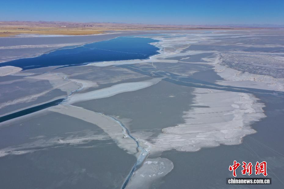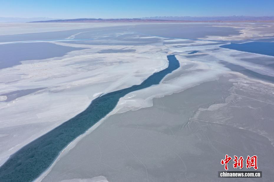 2月13日,青海省海北藏族自治州剛察縣圣泉灣景區(qū),中國最大的內(nèi)陸咸水湖青海湖已進(jìn)入封凍期。昔日碧波蕩漾的湖面被厚冰覆蓋,冰裂紋理如大地墨痕,與遠(yuǎn)處高山相映成畫,盡顯高原冬日的靜謐。(無人機(jī)照片)中新社記者 張忠蘋 攝