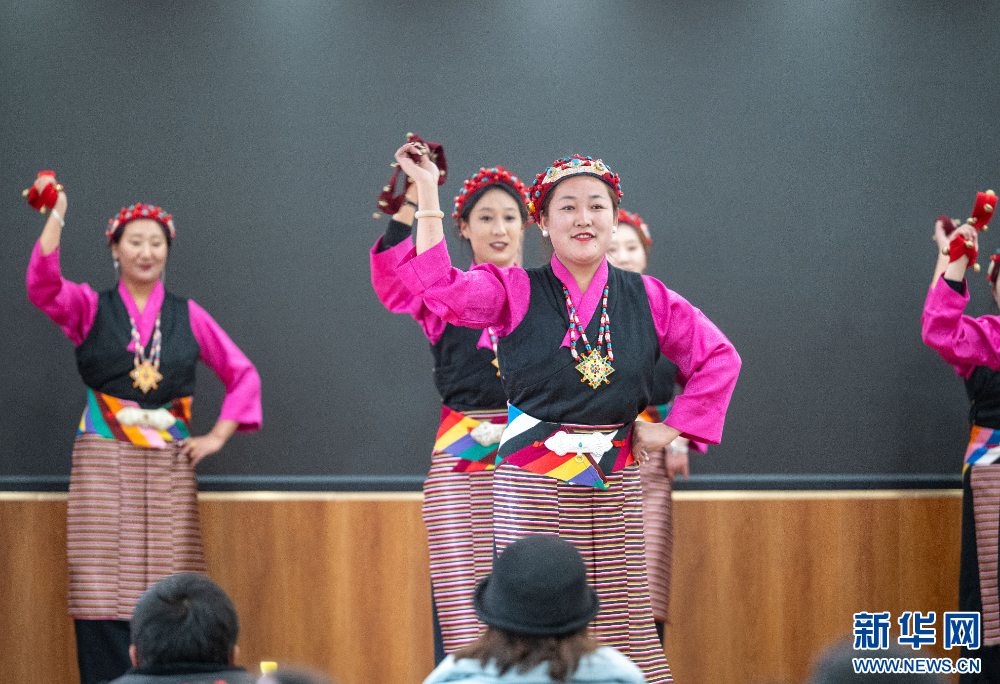 1月16日,社區(qū)文藝隊在表演節(jié)目。新華網(wǎng) 旦增努布 攝