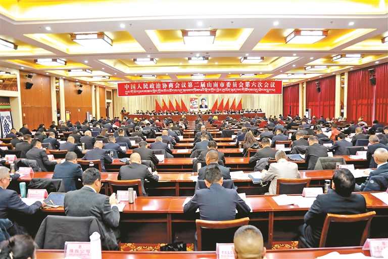 圖為中國人民政治協(xié)商會議第二屆山南市委員會第六次會議現(xiàn)場。
