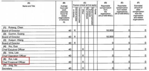 年審報告顯示,其財務(wù)總監(jiān)為李洪志的妻子李瑞(Rui Lee)