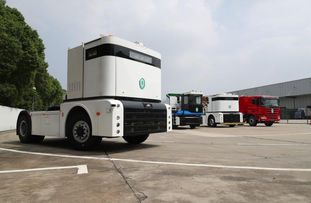 一輛西井科技的無(wú)人駕駛重卡Q-Truck(前)在位于上海的無(wú)人駕駛商用車(chē)聯(lián)合實(shí)驗(yàn)室場(chǎng)地上進(jìn)行動(dòng)態(tài)測(cè)試(2023年9月26日攝)。 新華社記者 方喆 攝
