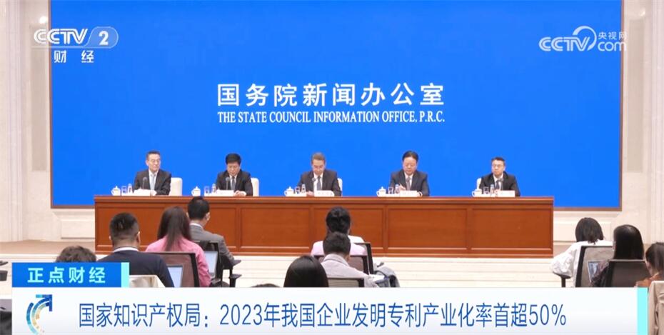 記者4月24日從國際知識產(chǎn)權局了解到,2023年,我國企業(yè)發(fā)明專利產(chǎn)業(yè)化率首次超過50%,來看報道。