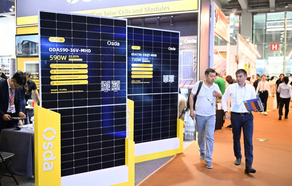在創(chuàng)維公司的展廳,眾多客商圍觀一款可以由直面屏變?yōu)榍嫫恋淖冃坞娨?。除家電外,公司還專(zhuān)設(shè)新能源光伏的展區(qū)。創(chuàng)維公關(guān)負(fù)責(zé)人孫妮介紹說(shuō):“四年內(nèi),創(chuàng)維新能源業(yè)務(wù)從無(wú)到有,目前達(dá)到約234億元的規(guī)模。”面對(duì)全球光伏及儲(chǔ)能領(lǐng)域的巨大市場(chǎng)機(jī)遇,創(chuàng)維集團(tuán)積極推進(jìn)新能源業(yè)務(wù)出海,現(xiàn)已布局到澳大利亞、墨西哥、南非等27個(gè)國(guó)家和地區(qū)。