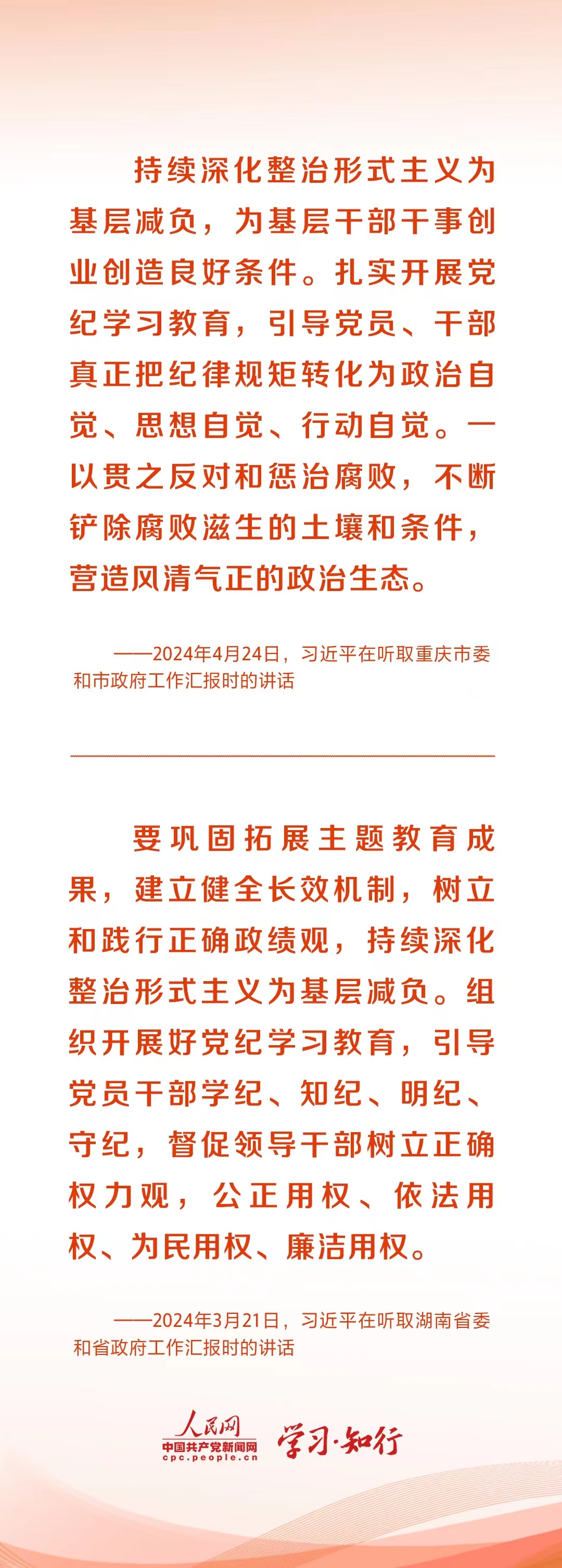 3月,湖南調(diào)研,習(xí)近平指出,黨中央明確要求為基層減負(fù),堅(jiān)決整治形式主義、官僚主義問題,要精兵簡政,繼續(xù)把這項(xiàng)工作抓下去。