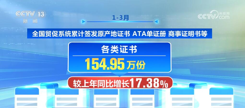 1—3月,全國(guó)貿(mào)促系統(tǒng)累計(jì)簽發(fā)原產(chǎn)地證書、ATA單證冊(cè)、商事證明書等各類證書154.95萬份,較上年同比增長(zhǎng)17.38%。其中,全國(guó)貿(mào)促系統(tǒng)非優(yōu)惠原產(chǎn)地證書簽證金額共計(jì)849.31億美元,同比增長(zhǎng)2.47%;全國(guó)貿(mào)促系統(tǒng)優(yōu)惠原產(chǎn)地證書簽證金額共計(jì)161.21億美元,同比增長(zhǎng)4.73%。