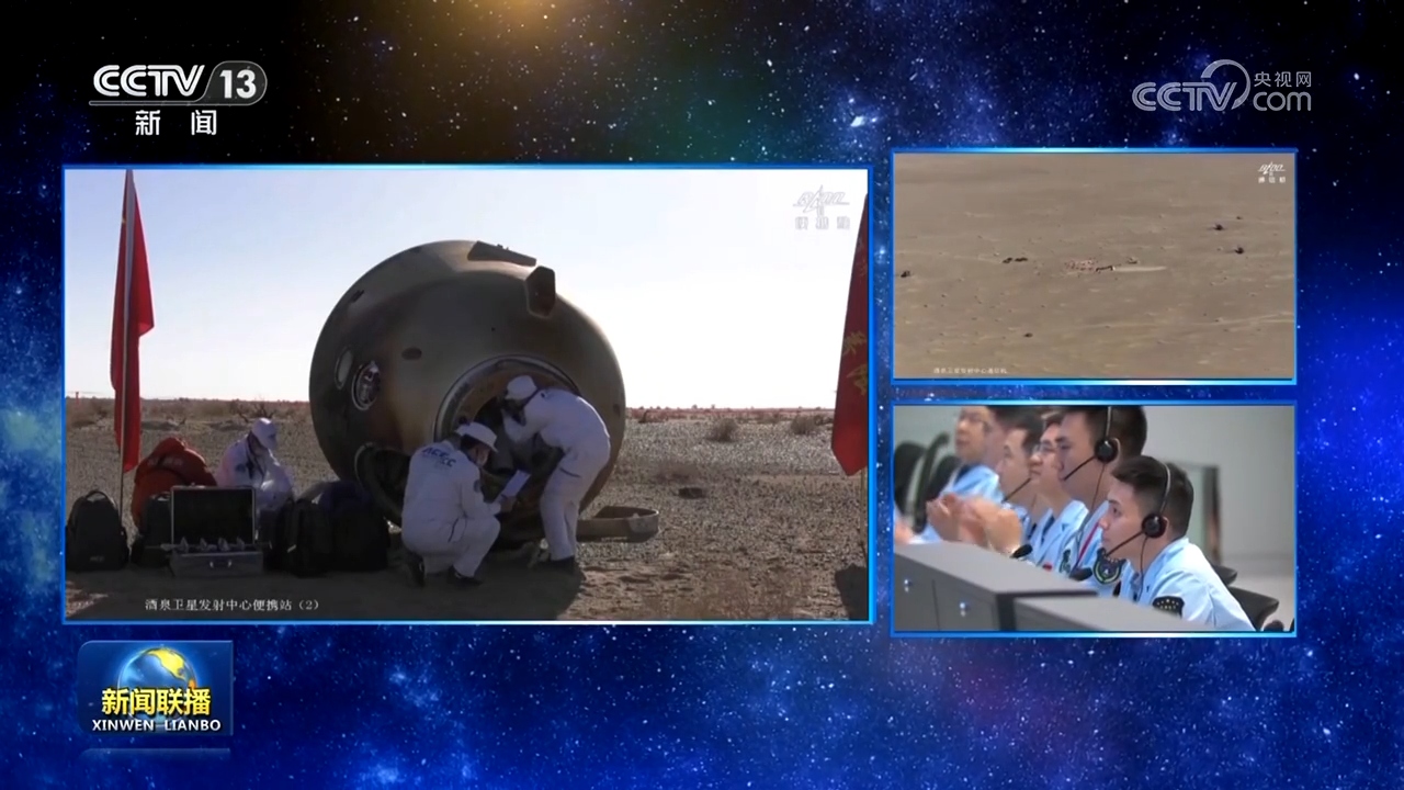 16時56分,北京航天飛行控制中心通過地面測控站發(fā)出返回指令,神舟十七號載人飛船軌道艙與返回艙成功分離。之后,飛船返回制動發(fā)動機點火,推進艙與返回艙分離,返回艙成功著陸,擔(dān)負搜救回收任務(wù)的搜救分隊及時發(fā)現(xiàn)目標(biāo)并抵達著陸現(xiàn)場。返回艙艙門打開后,醫(yī)監(jiān)醫(yī)保人員確認航天員身體健康。