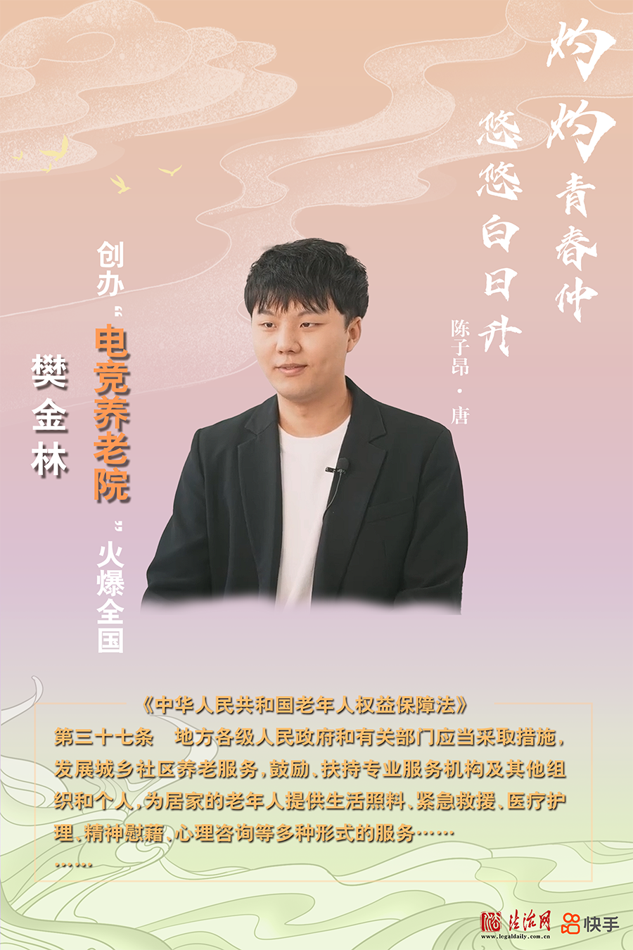 1997年出生的河南小伙樊金林(藝名:林燒)在河南省許昌市經(jīng)營了中國首個“電競養(yǎng)老院”。他把年輕人里流行的電競、蹦迪、桌游等帶進養(yǎng)老院,還帶老人們一起拍攝短視頻,通過在社交平臺記錄他們?nèi)粘I畹狞c滴,讓越來越多的人了解到“原來老年生活還可以這樣有趣”。