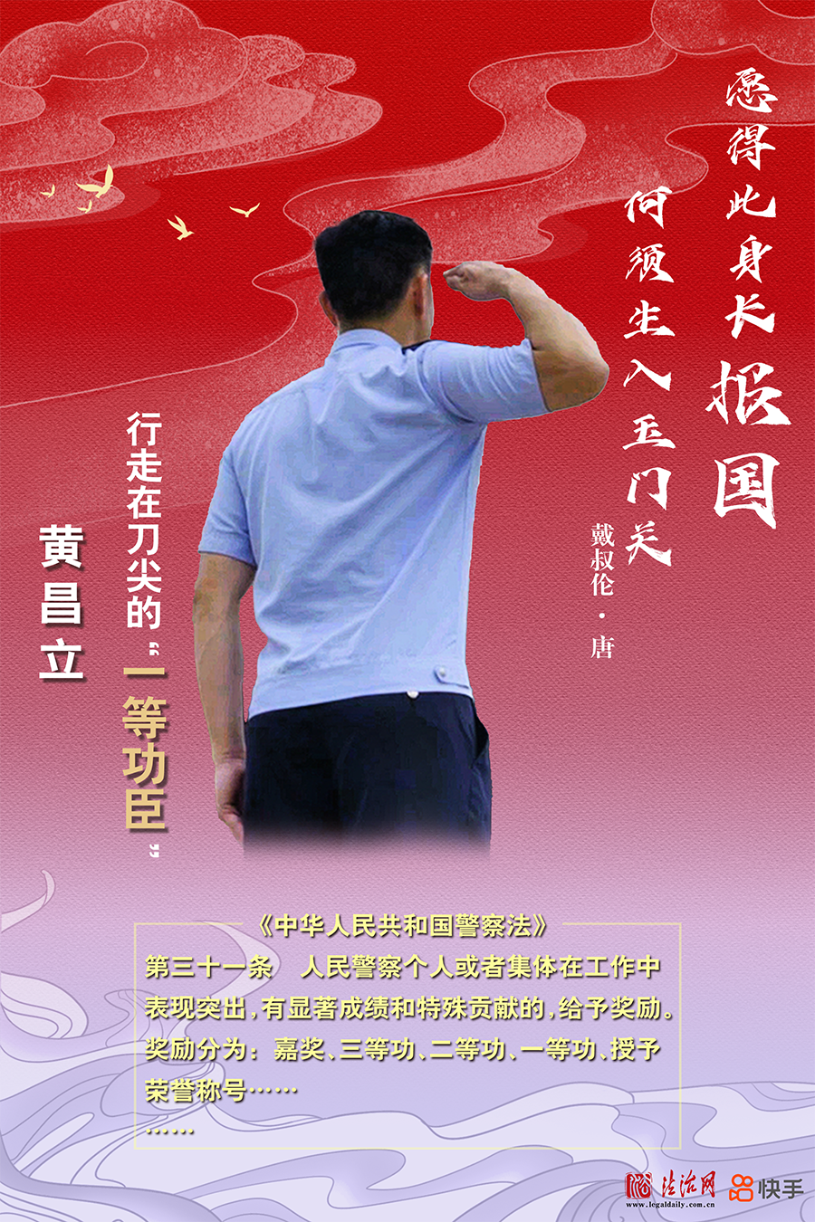 黃昌立受軍人父親影響,從小便向往軍警職業(yè)。2009年,他從警校畢業(yè),成為廣西出入境邊防檢查總站崇左邊境管理支隊的一員。他曾多次與帶槍毒販正面交鋒,直面毒販的刀刃和槍口。因工作成績突出,被評為一等功臣、全國公安系統(tǒng)二級英雄模范。