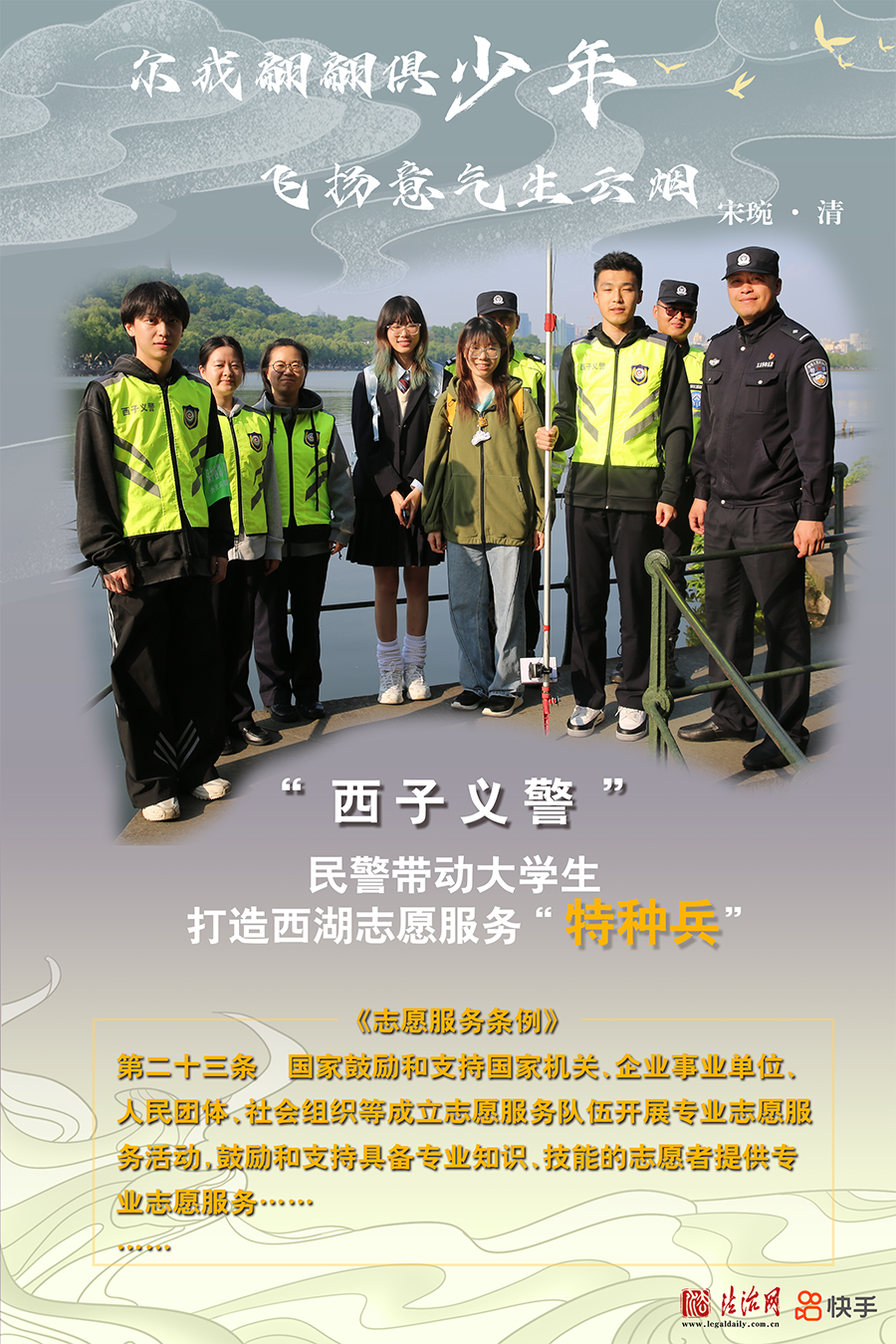浙江省杭州市公安局西湖風(fēng)景名勝區(qū)分局組織公安巡特警、消防、交警、行政執(zhí)法、平安志愿者等各方力量參與社會治理工作,逐漸壯大的“西子義警”隊伍已成為西湖邊守望平安的重要力量。近期,一群朝氣蓬勃的青年大學(xué)生加入“西子義警”隊伍,共同營造更加和諧的西湖景區(qū)平安環(huán)境。