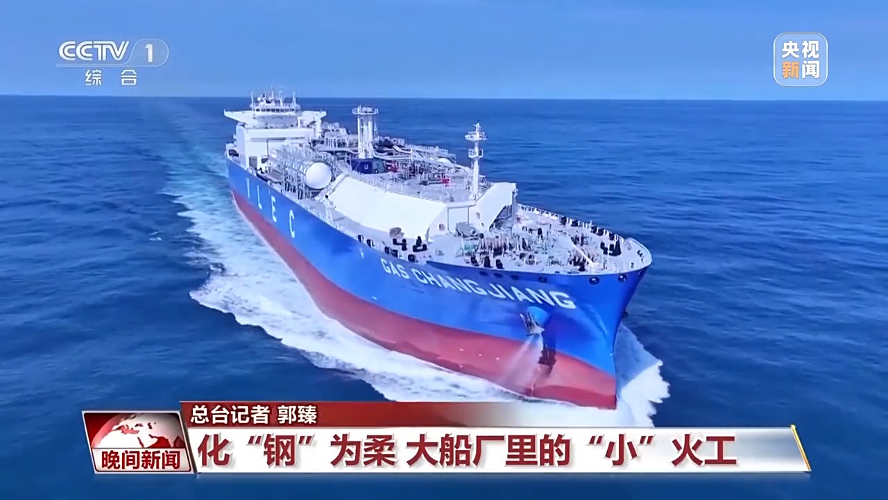 4月下旬,上海長興的江南造船基地,剛剛交付一艘世界最大艙容——99000立方米超大型乙烷雙燃料運輸船,這艘船的船首球形鼻首和船尾上復(fù)雜曲線鋼板,正是火工班組的師傅們精心打造的。