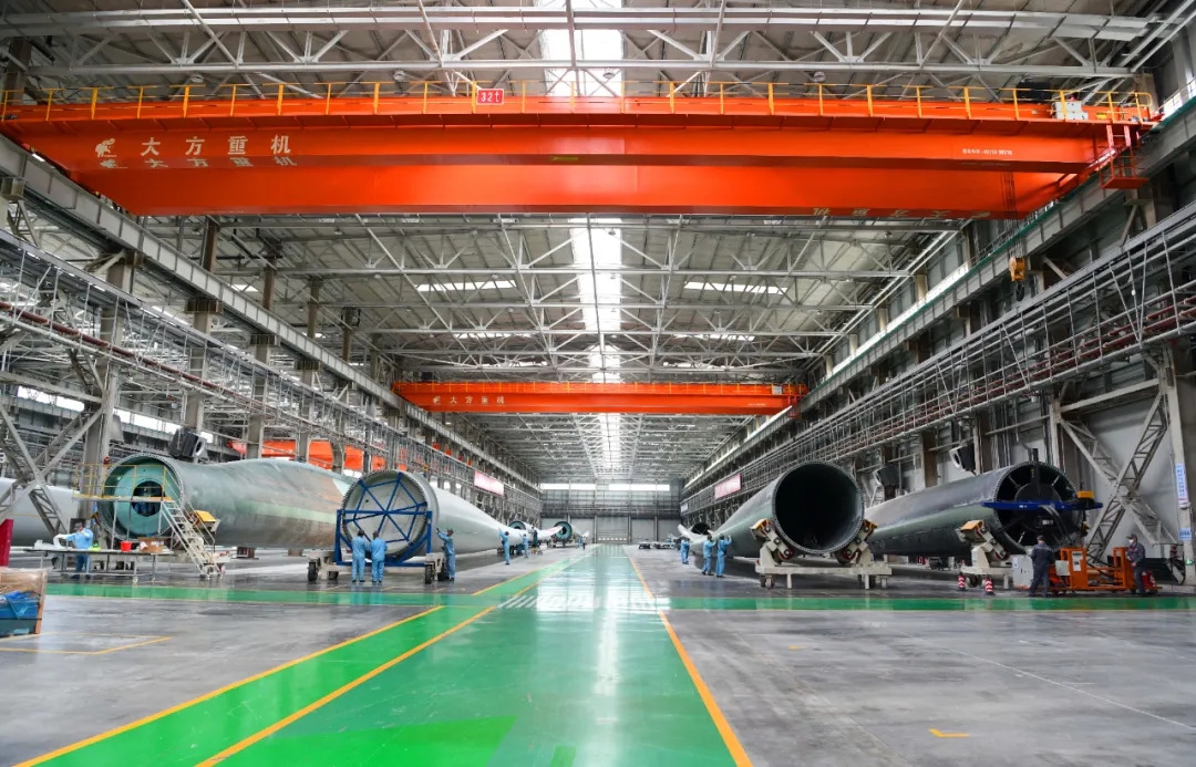 在松原市中車松原新能源裝備產(chǎn)業(yè)基地項目生產(chǎn)車間,工人正在加緊生產(chǎn)風(fēng)電設(shè)備。該項目投資450億元,從簽約到開工僅用100天,從開工到產(chǎn)品下線只用了100余天。一個“風(fēng)光”產(chǎn)業(yè)項目高速建成投產(chǎn)的背后,是吉林省發(fā)展風(fēng)電產(chǎn)業(yè)決心的生動實踐。才原 攝(資料圖片)