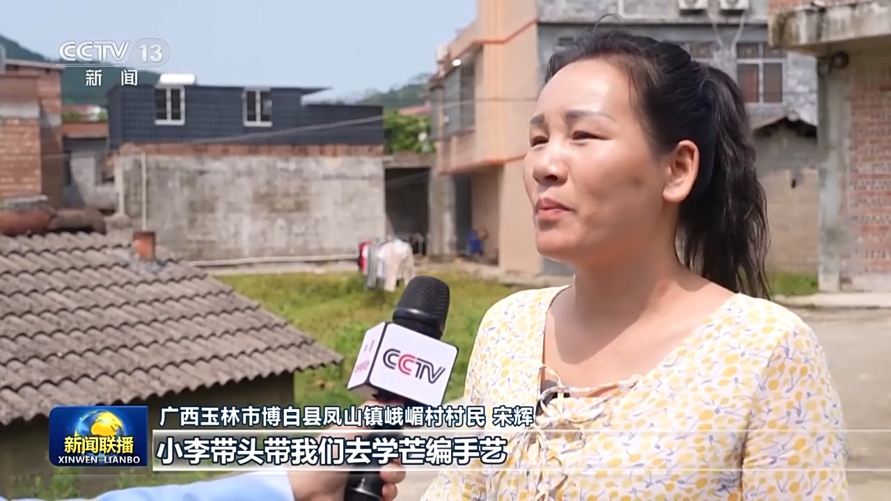 廣西玉林市博白縣鳳山鎮(zhèn)峨嵋村村民 宋輝:小李帶頭帶我們去學芒編手藝,幫我們找訂單,以前楊梅下了市,我們基本也沒什么能干的了,現(xiàn)在都有點忙不過來。