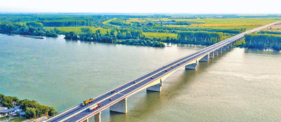 由中國(guó)企業(yè)承建的塞爾維亞貝爾格萊德澤蒙—博爾察大橋(普平大橋)。