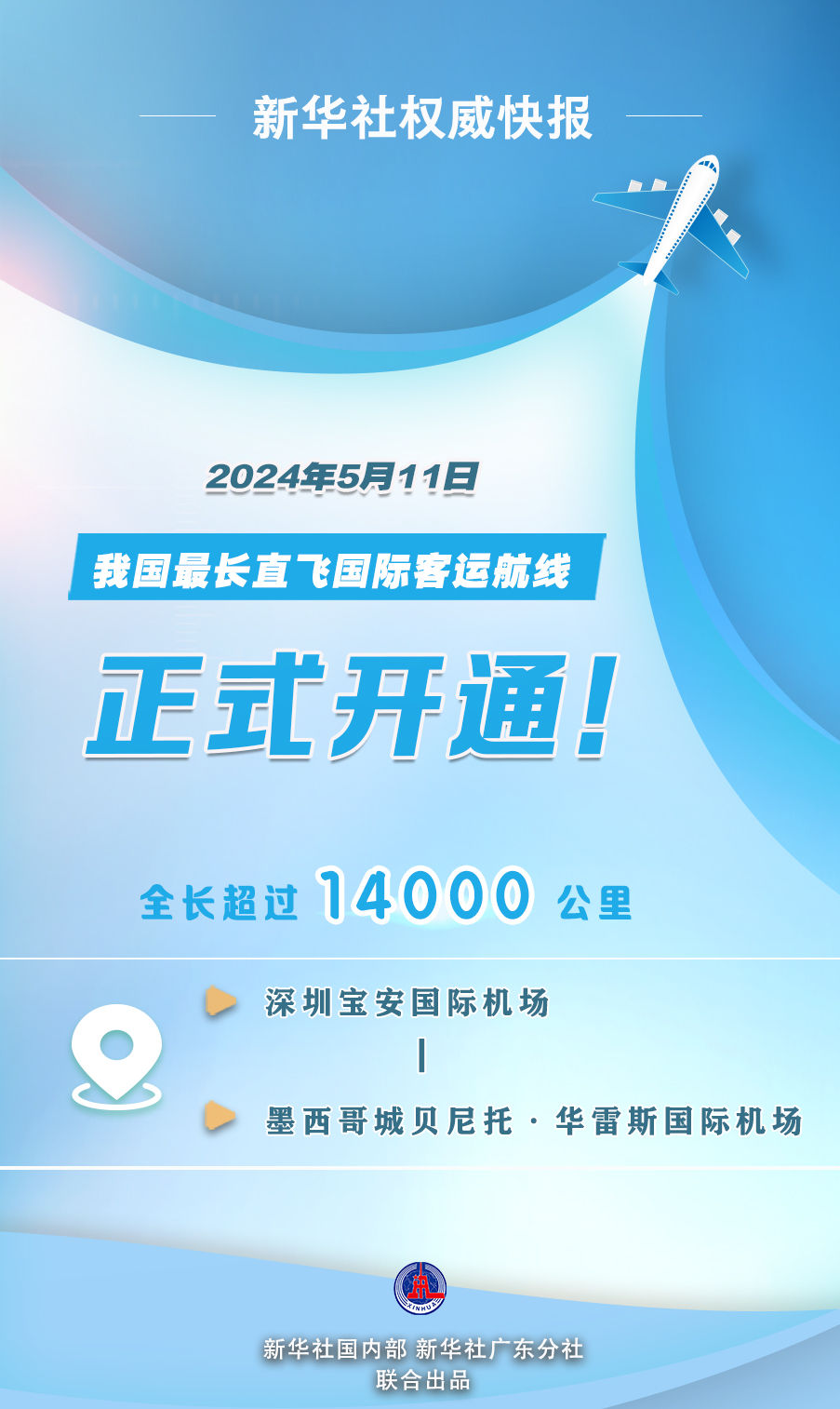5月11日晚上,首航航班CZ8031從深圳起飛,飛行約16小時(shí),跨越超14000公里,抵達(dá)墨西哥城。