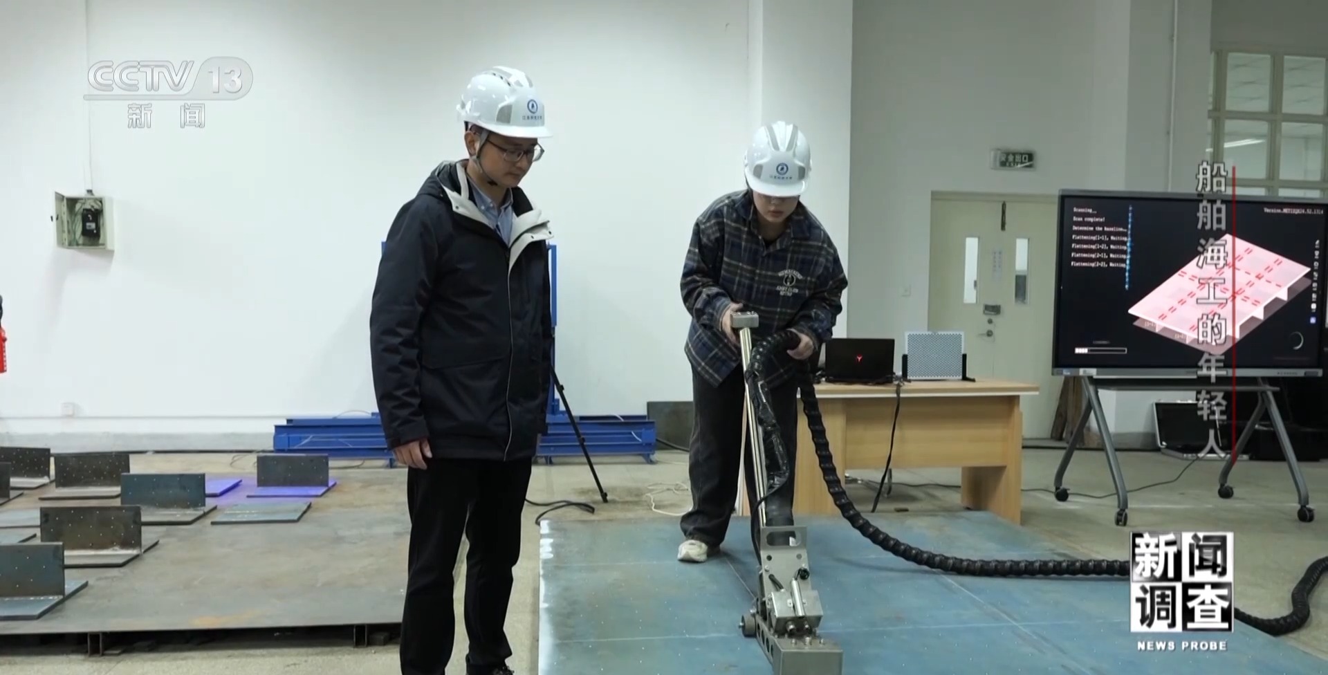 上海外高橋造船有限公司精度技術(shù)部副部長 孫建志:我們做了大量的實驗,根據(jù)不同的變形用不同的辦法,看它的矯平的效果,