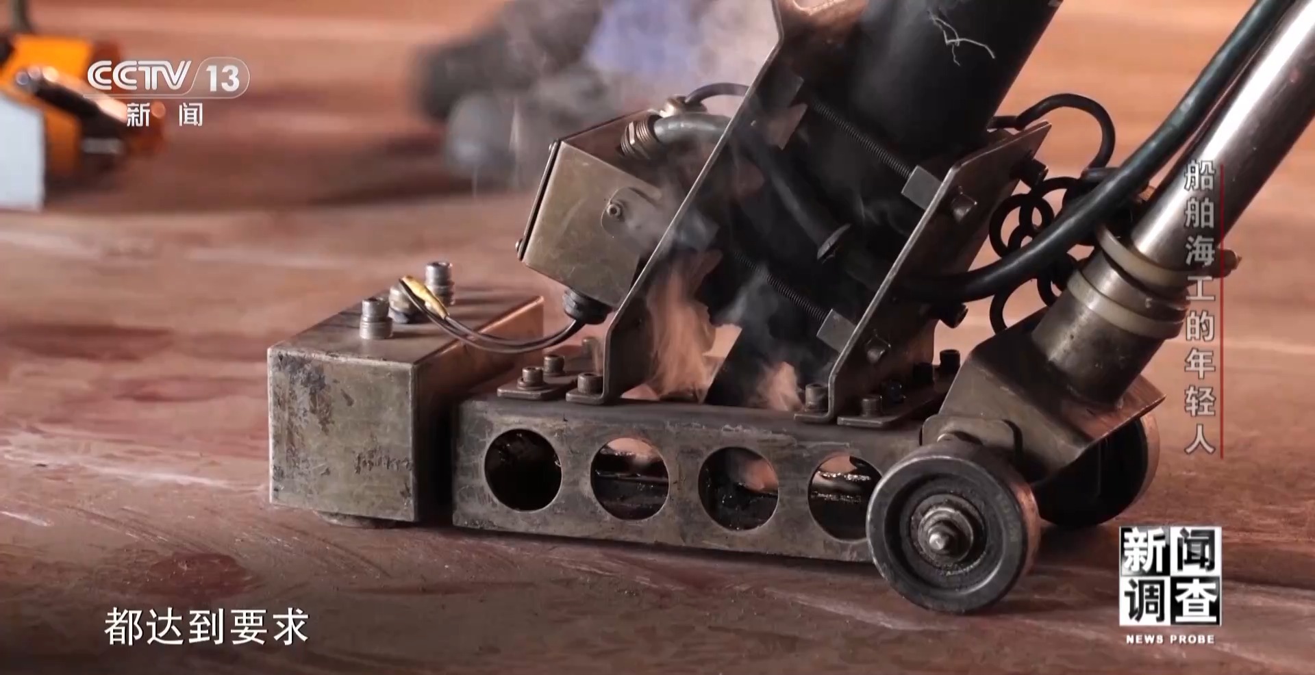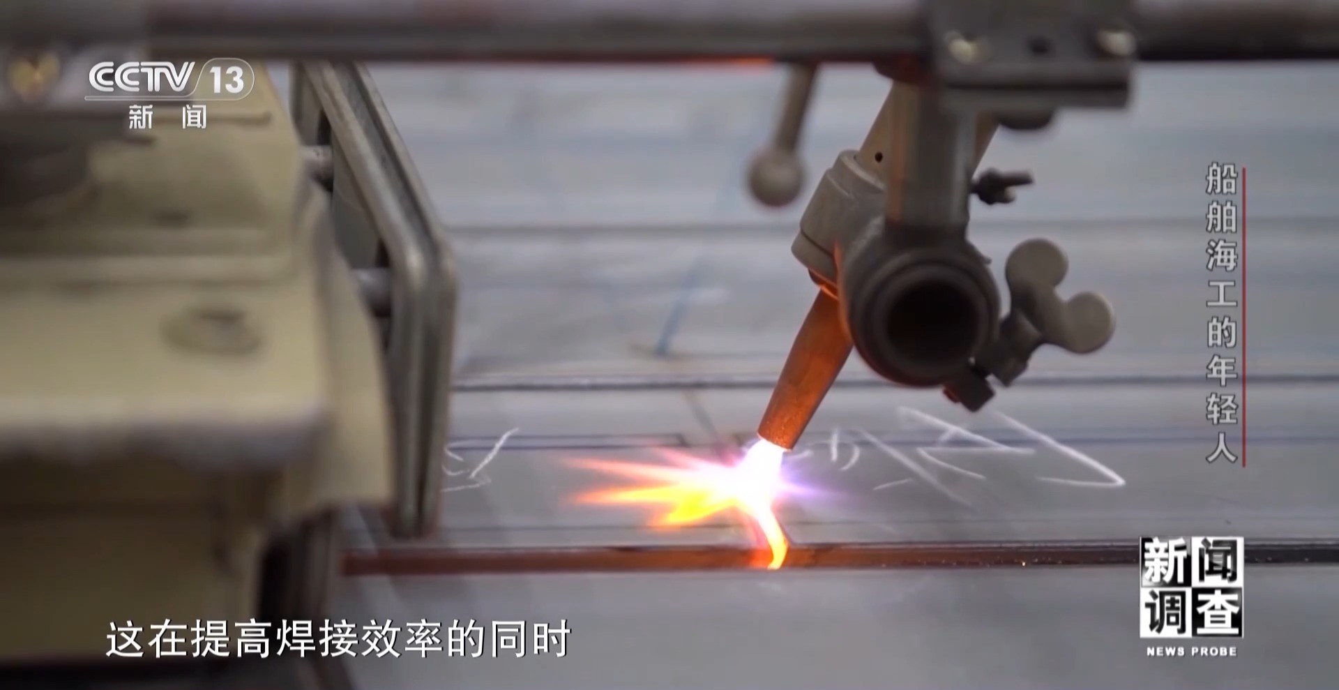 江蘇大洋海洋裝備有限公司技能大師工作室主任 孫玉龍:這個板子比較特殊,它是EH690鋼,硬度比較高,板厚也比較厚。想把它焊合格是很難的,兩個人要焊一天。焊不好它會產(chǎn)生內(nèi)部缺陷,比如說氣孔、裂紋等一系列的缺陷在里面。