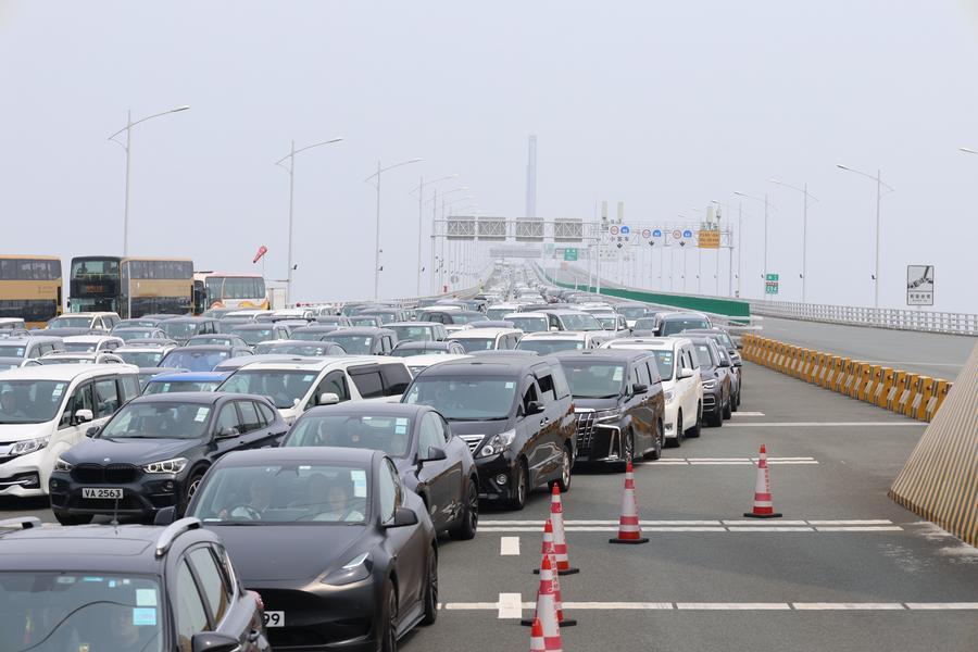 2024年3月9日拍攝的港珠澳大橋橋頭等待北上的車輛。港珠澳大橋邊檢站的數(shù)據(jù)顯示,截至3月9日21時(shí),經(jīng)該站查驗(yàn)的出入境“港車北上”車輛已突破50萬輛次。邊檢部門介紹,自2023年7月1日“港車北上”政策正式實(shí)施以來,駕駛單牌私家車“北上”的香港居民數(shù)量持續(xù)上升。 新華社發(fā)(王相國攝)