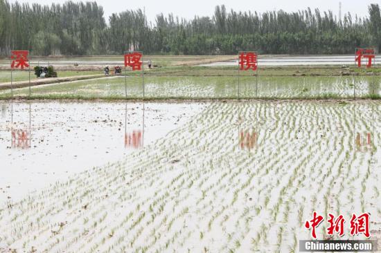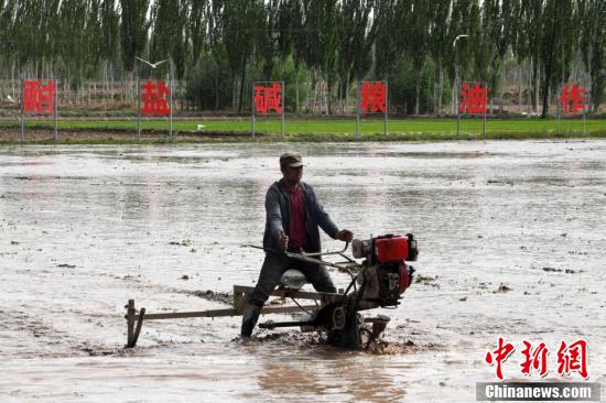 工作人員正搶抓農(nóng)時進行“海水稻”播種工作。