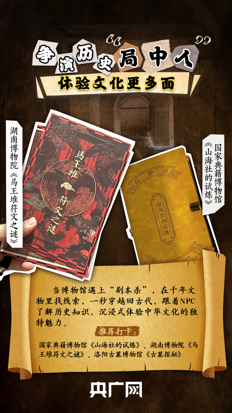 在國家典籍博物館的甲骨文展覽中尋找線索、到湖南省博物館破解“馬王堆符文之謎”……“五一”假期,不少人在博物館進(jìn)入“劇本殺”的世界,跟著NPC了解歷史知識,沉浸式體驗(yàn)中華文化的魅力。