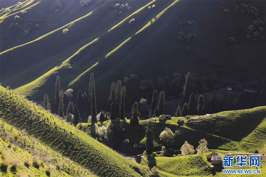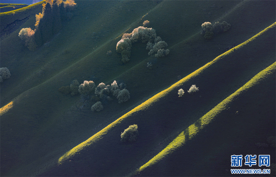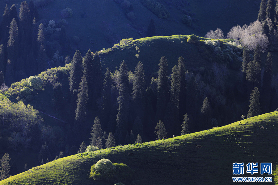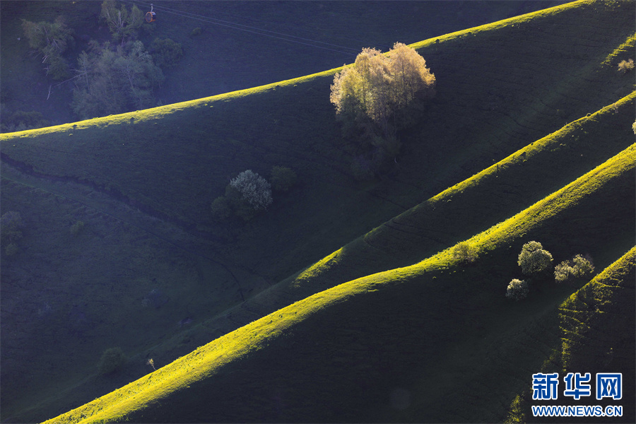 5月的新疆那拉提草原綠草如茵,繁花盛放,生機勃勃。清晨的光線照射在那拉提起伏的山體脊梁上,匯聚成神奇的光與影的世界,陽光勾畫出山體草甸輪廓,線條柔美,層次分明。山梁與山脊、草木披上金色長袍,為綿延起伏的草甸增戴上神秘面紗,一幅美麗的畫卷展現(xiàn)在眼前,令人陶醉。