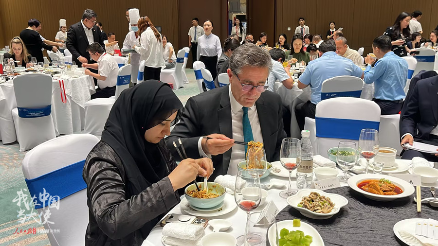5月18日,巴基斯坦駐華大使卡里爾·哈什米品嘗重慶小面。(謝明/攝)