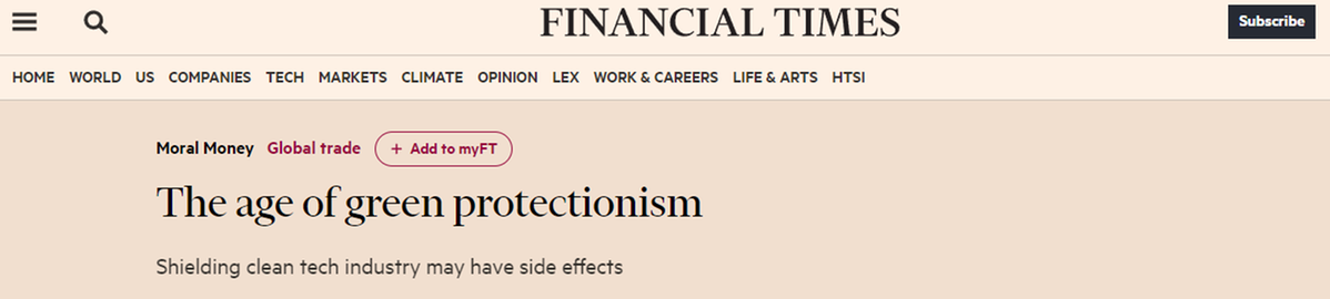 《金融時報》網(wǎng)站17日刊文稱,美國的“綠色”保護主義措施將不可避免地擾亂貿(mào)易,不利于美國國內(nèi)制造商提高產(chǎn)能。對于應(yīng)對氣候變化而言,此舉或阻礙全球能源綠色轉(zhuǎn)型。