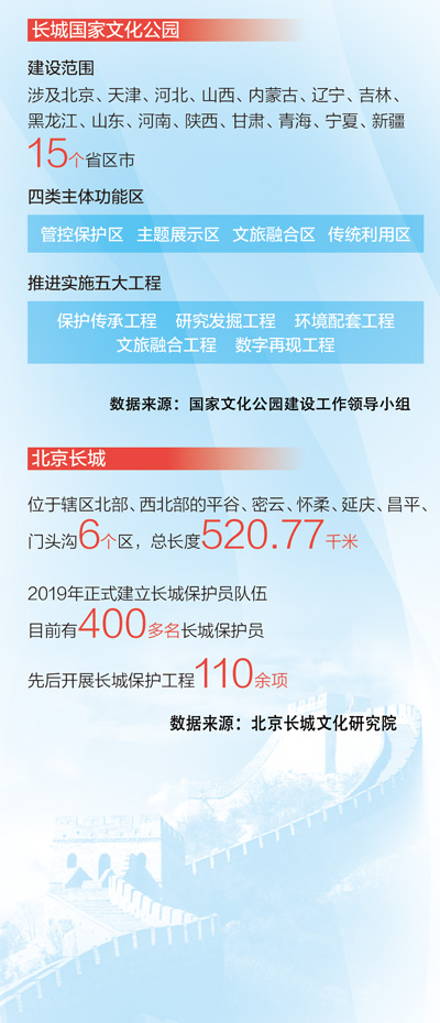 隨著長城國家文化公園建設推進,各地不斷創(chuàng)新長城保護方式,長城的保護狀況持續(xù)改善。2019年,中辦、國辦印發(fā)《長城、大運河、長征國家文化公園建設方案》。2021年,國家文化公園建設工作領導小組印發(fā)的《長城國家文化公園建設保護規(guī)劃》提出,著力將長城國家文化公園打造為弘揚民族精神、傳承中華文明的重要標志。