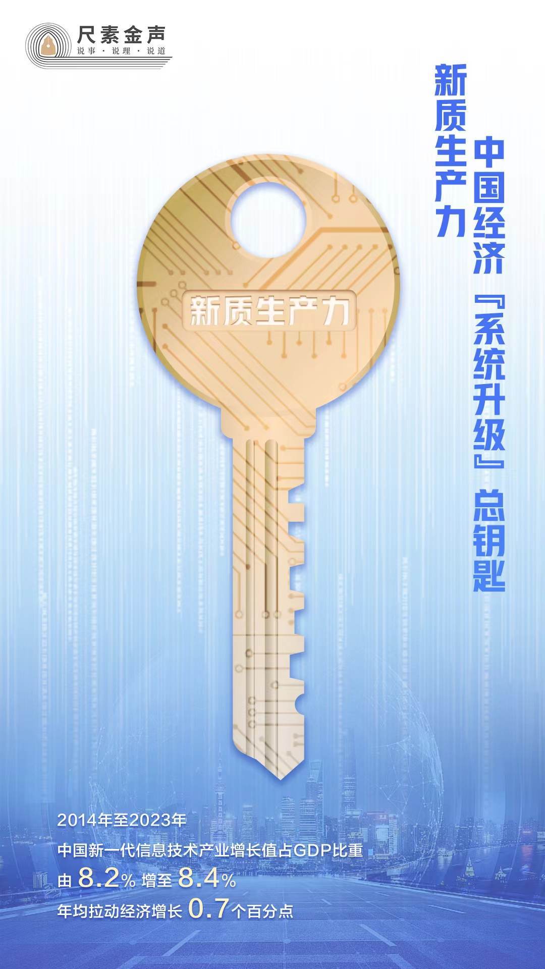 眾所周知,高質(zhì)量發(fā)展是中國全面建設(shè)社會主義現(xiàn)代化國家的首要任務(wù)。如果把高質(zhì)量發(fā)展比喻成一套房間,新質(zhì)生產(chǎn)力就是總鑰匙。抓住總鑰匙,就打開了發(fā)展新空間。